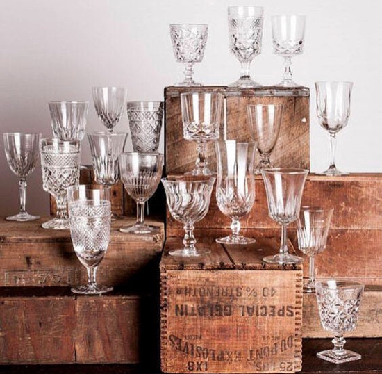 Vintage GlasswareVintage glassware is the perfect edition to personalise any table setting. Add the prettiest touch to your table with our range of crystal & cut glasses available for hire.