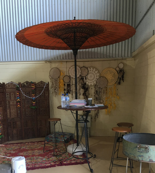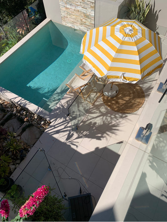 Scalloped Outdoor Umbrella Creme Inc Base Plate x4 Available
