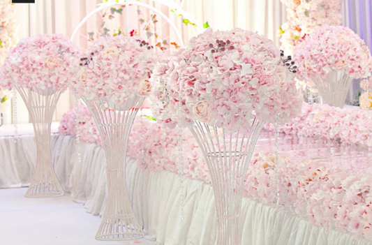 Geometric Flower Stand Centerpiece - Silver 3-Piece Set
