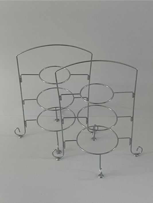 Blue & White 3-Tier Silver Metal Plate Stand x2 Bundle