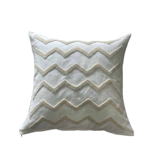 Oversized Square Cushions - Cream Beige Tufted Zig Zag Pattern x 2 Bundle