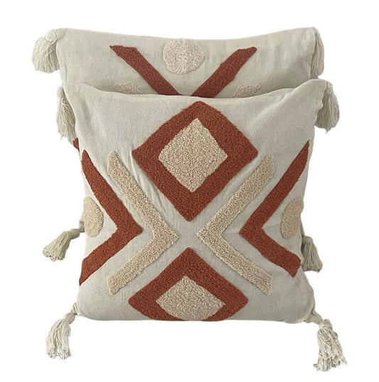 Large Square Cushions - Rust Tassels Diamond Pattern x2 Bundle